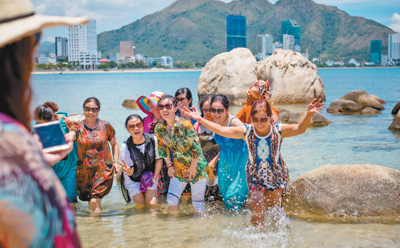 随着中国和东盟国家交往日趋紧密,赴东南亚国家旅游的中国游客逐年增多。图为日前中国游客在越南旅游城市芽庄合影留念。