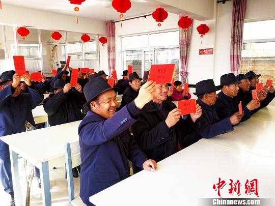 图为青海大通城关敬老院老人收到春节慰问金。 张添福 摄