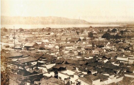 印发在257页的杭州城区图,是杭州最早的城区照片,也是至今发现的杭州最早的照片。这张照片摄于1865年(太平天国运动后不久),可能是站在吴山脚下往远处拍的场景,当时城内的房子和远处的西湖、保俶塔都一清二楚,清晰度很高。昨天,这张照片的收藏者韩一飞先生也到首发现场,他说此照片是10年前从美国购得的,这是第一次编入书籍。