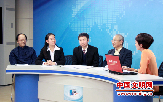 2014年1月17日,“孝道在当代中国”网上系列访谈首场在中国文明网举行,图为访谈现场。中国文明网 项丽 摄
